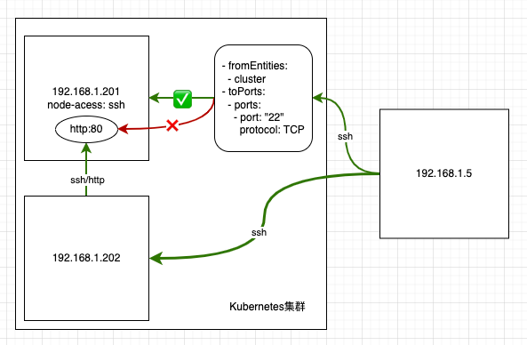创建以下的主机网络策略。首先 nodeSelector 负责筛选指定节点,策略只允许 TCP/22 和 ICMP echo 请求从群集外部进行通信,同时也允许从群集到主机的所有通信。
