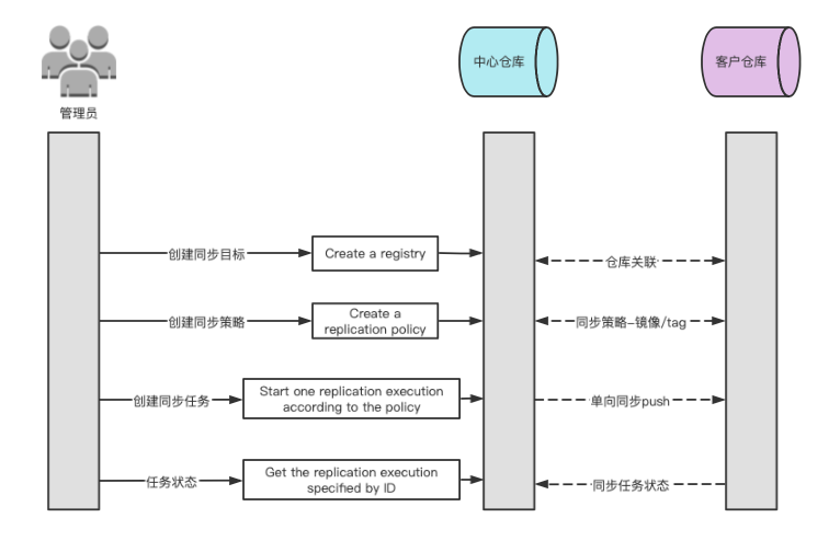 涉及到的接口逻辑如下,先创建复制的目标仓库,再创建复制的任务,然后执行,最后查看结果。