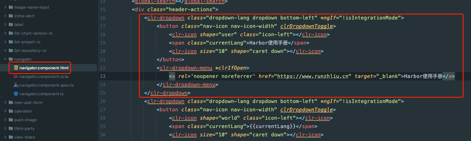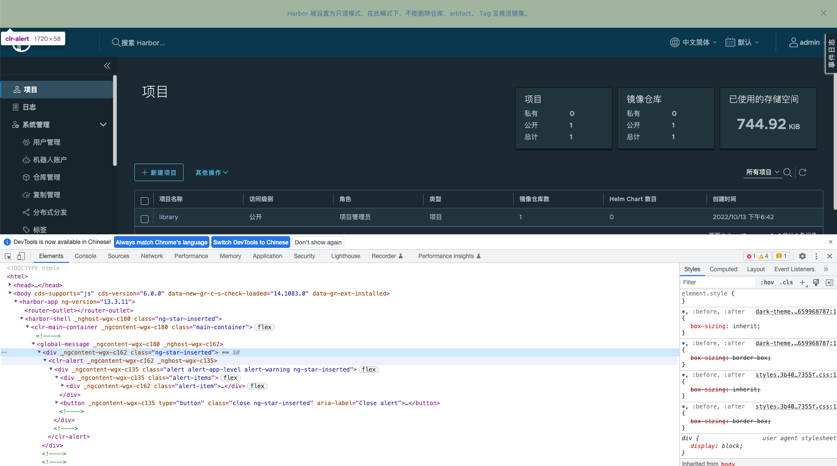 查看 Harbor 的代码得知,上述的提醒,会根据语言切换,比如中文的提示会在 /usr/share/nginx/html/i18n/lang/zh-cn-lang.json