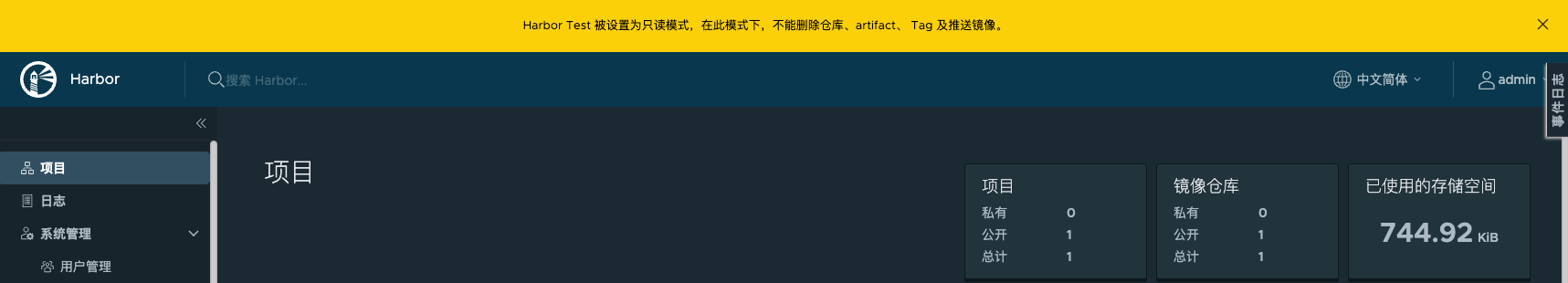当我们设置 Harbor 只读的时候,会出现这样一个提醒信息,因此其他类型的提示也希望是这页面的上方加入一个用户手册的指引的模块,类似下图,并且能够覆盖所有类型的语言。