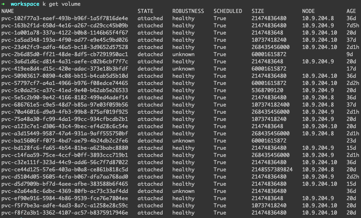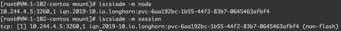 可以知道目前这个 Pod 所使用的副本就是该 Pod 所在节点上的存储空间。通过 iscsiadm