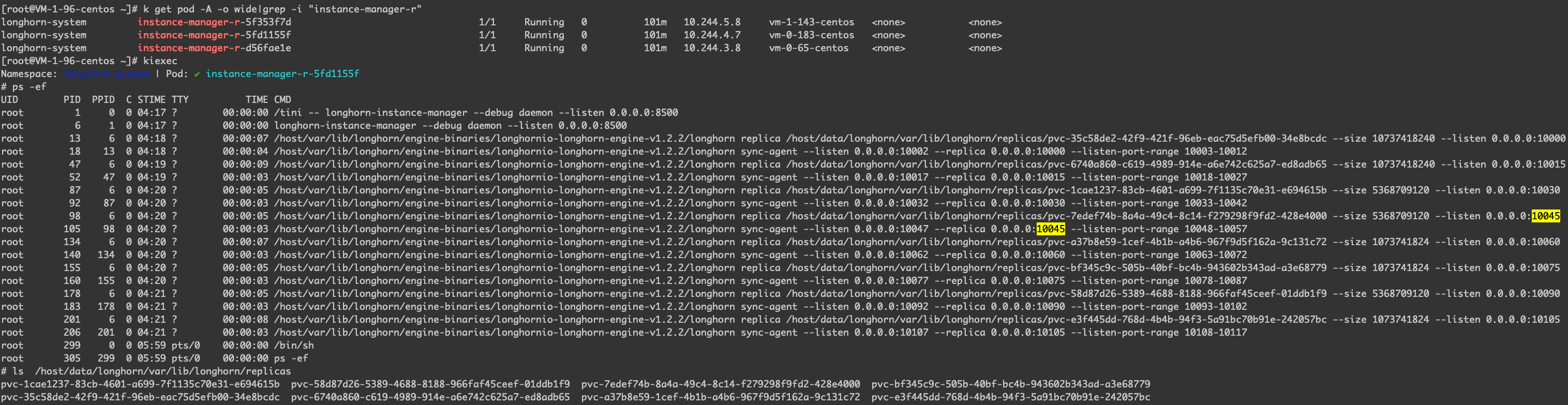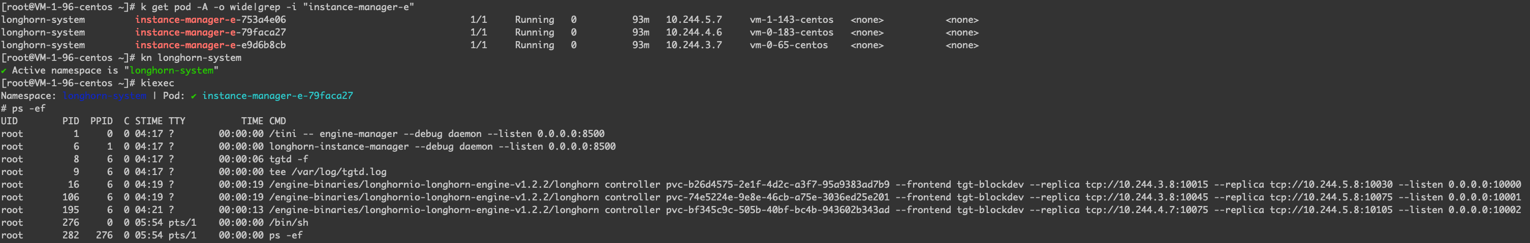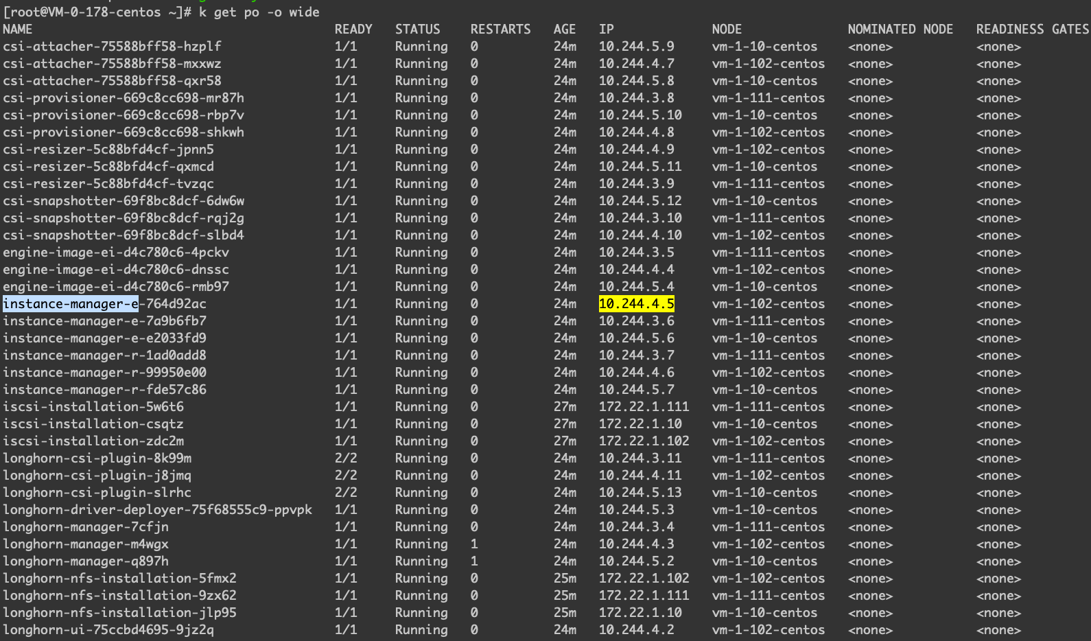 为什么上图会显示这个10.244.4.5这个 IP 呢,那是因为 instance-manager-e 运行在该节点,且其 Pod IP 是10.244.4.5。