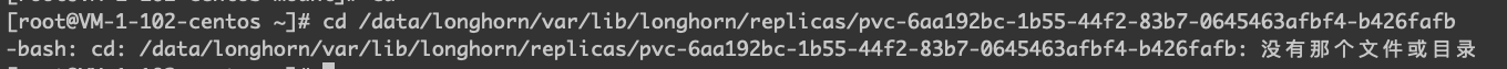 此时将默认副本数调整成1,然后删除 vm-1-102-centos 这个节点上的副本,会发现 vm-1-102-centos 这个节点上的目录没有了。