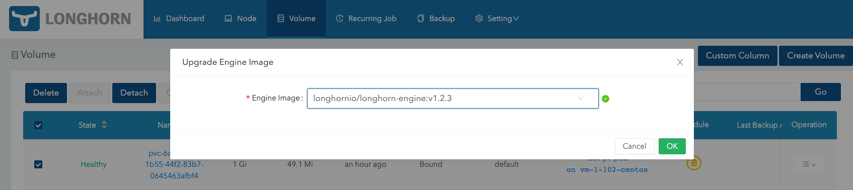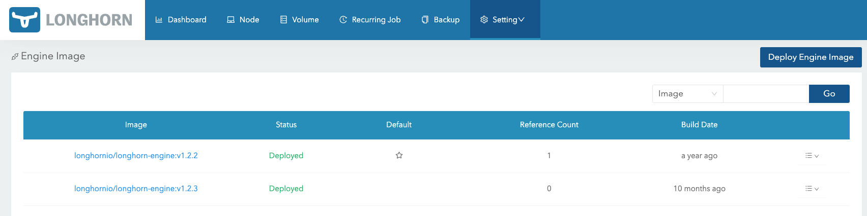 更新 Engine 的镜像,查看对网络存储是否有影响,新增 longhornio/longhorn-engine:v1.2.3 这个镜像。