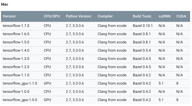 换句话说,如果 Bazel 对应的版本是0.9.0,那么用来编译TensorFlow 1.7.0 就有可能编译不过了。