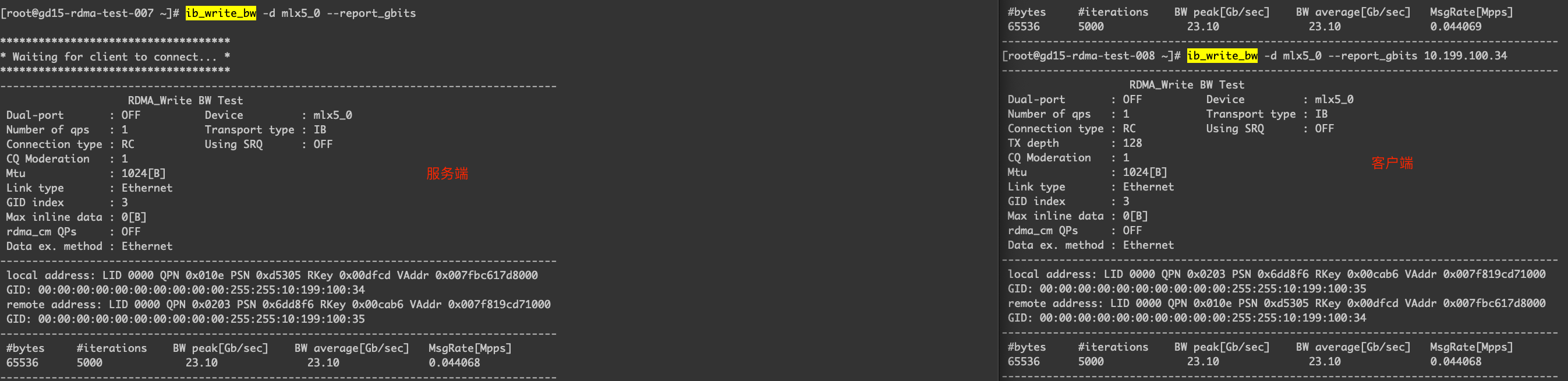 ib_write_bw 测试工具是通过在测试主机之间传输数据的方式来测试网络性能。这个过程中,一个主机将一定数量的数据发送到另一个主机,接收方主机在收到所有数据之后向发送方主机发送一个确认消息。ib_write_bw 测试工具可以使用不同大小的数据块来测试不同的网络负载情况,从而确定网络的带宽和延迟性能。